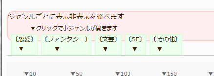 グレーになったジャンルの作品は一覧の表示から外されますので、好みの作品が探しやすくなるという機能です。